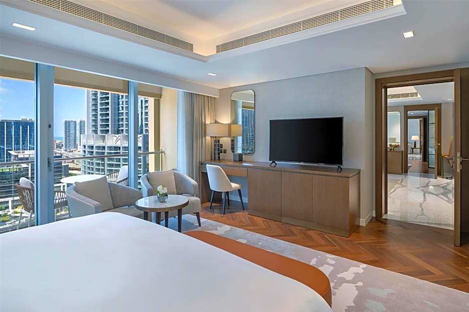 Similar to the Deluxe Boulevard View King Rooms across almost every facet, the Superior Boulevard View King Rooms are additionally privileged with unique views of Boulevard and Partial Burj Khalifa which can be enjoyed from a private balcony. The allure of these refined spaces is superbly enhanced by tasteful appointments and luxurious décor, and can be comfortably shared with friends and family via a connection to an adjacent room in some instances.